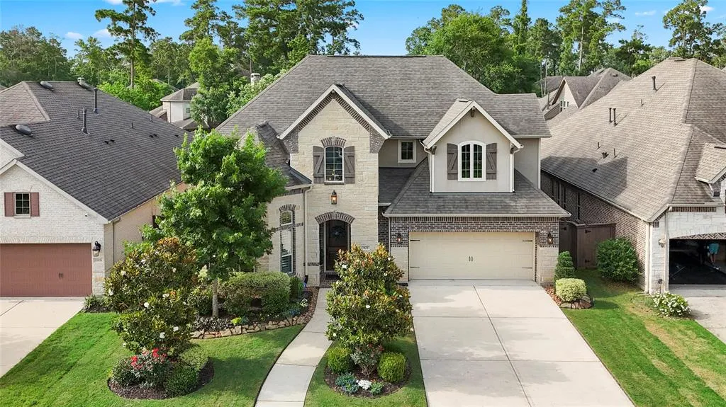 Luxury Village Builders Brentwood floor plan in prime location at The Groves. From the moment you walk up to this property you will love the exceptional landscaping in the front and backyard. A grand foyer entrance, handsome private study with gorgeous ceiling! Elegant dining room, J Kraft kitchen cabinets, pot filler at the stove! The kitchen is open to the living space with cozy fireplace. This upscale home has 4 bedrooms, 3 full bathrooms, powder room on first floor, spacious upstairs gameroom. Plantation shutters, solar panels, stylish heat pump AC in garage, generator interconnection, beautiful covered patio. This home is a showstopper and truly a must-see.