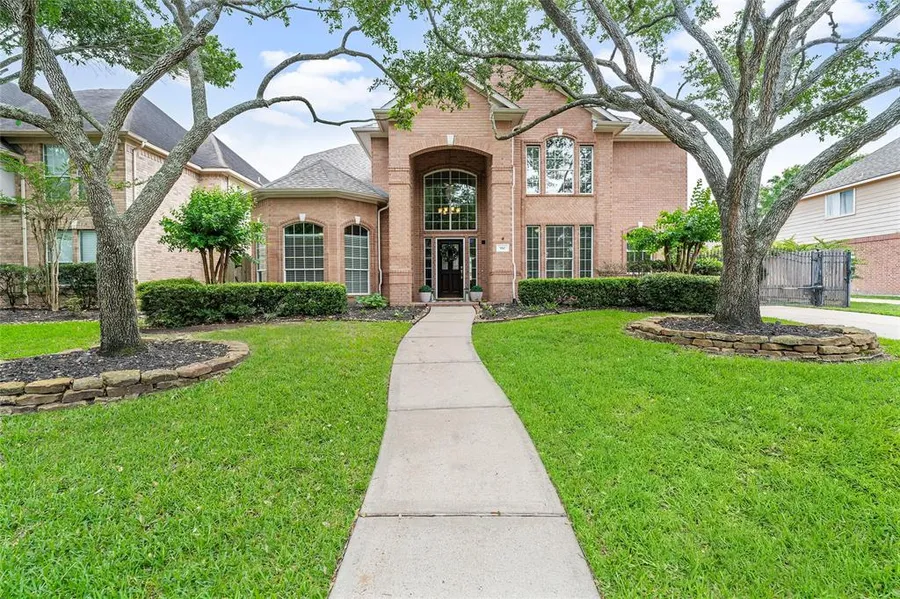 This stunning 4 bed, 3.5 bath home located in GREEN TRAILS has been stylishly upgraded. Kitchen with island, STAINLESS STEEL APPLIANCES, GRANITE counters leads to the family room with cosy fireplace. Laundry room has custom cabinetry, wine rack & wine fridge. Custom-made barn door leads to the STUDY. FORMAL DINING room, currently being used as a playroom. Upgraded powder room - new vanity & lighting. Spacious primary suite with SITTING AREA & WALK-IN CLOSET. Sweeping staircase leads to the 2nd floor with GAMEROOM, & STUDY NOOK with custom cabinets, desks & shelving. Secondary bath - updated vanity, flooring & hardware. Engineered WOOD FLOORS THROUGHOUT. Backyard has the extra privacy of NO DIRECT BACK NEIGHBOURS. Sparkling heated POOL & SPA with removable pool safety fence. PERGOLA covered patio. 3-car garage & automatic driveway gate. See feature sheet for all updates. NEW ROOF 2021. Convenient location to I10, shopping, restaurants, walking distance to park/splash pad.