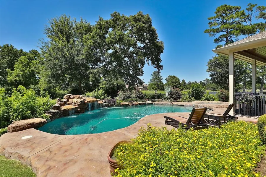 Convenient to the Exxon campus, The Woodlands, and 99! On Willow Creek Golf Course, under a million! Enjoy Northampton taxes while being zoned to highly regarded schools. Meticulously maintained, this outdoor paradise adjoins the 14th green. Huge covered patio with outdoor kitchen, pool/spa, fabulous view and no backyard neighbors! Updated double pane EE windows. Beautifully updated gourmet kitchen with Wolf appliances, 42 Subzero fridge, U-line ice maker. Primary suite on first floor, with large secondary bedrooms and game room upstairs. Huge walk in pantry with abundant built-in storage. Whole home natural gas generator. Recent updates include primary suite renovation and roof replacement in 2023. Custom plantation shutters throughout. Has never flooded.