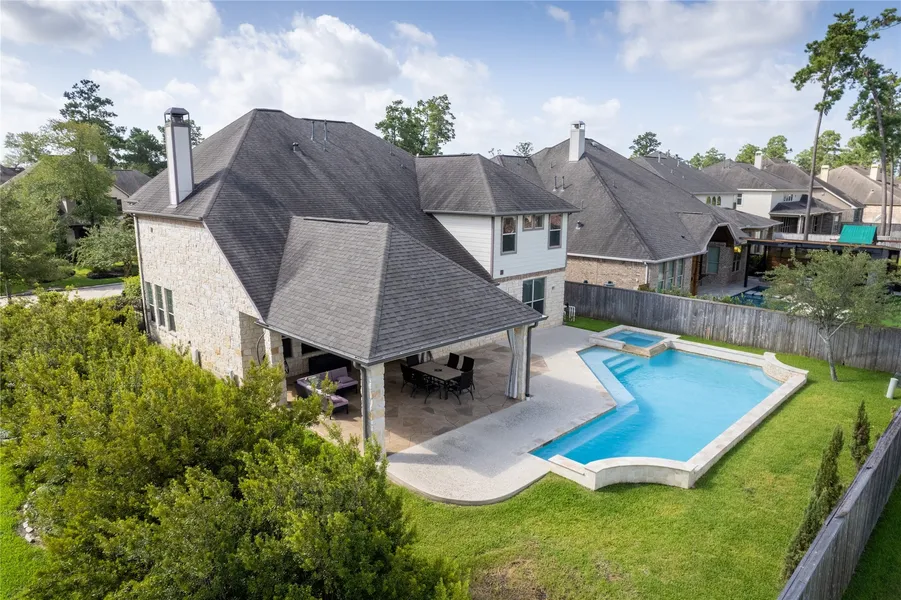 Amazing home in the Creekside Park Village at a walking distance from the extraordinary Tupelo Park. Fishing, walks in the park, playground, bike rides, basketball court and many more attractions are offered in this glamorous neighborhood. Excellent location to the award winning Tomball ISD schools. The backyard will make entertaining your family and friends a true delight with the expanded back porch and pool with an fantastic spa. It has an bedroom downstairs, and the primary bedroom and two secondary are upstairs. As an additional highlight there is a hidden extra room behind the closet in one of the secondary bedrooms, which can be used for storage, a game room, etc. Refrigerator, washer, dryer and outdoor furniture is negotiable. Absolutely gorgeous!
