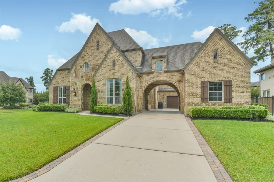 Pristine Highland home with grand porte cochere in highly desired Paloma Bend on a spacious corner lot! Beautiful custom features throughout with an executive home office, game room & media room. Fantastic layout with open living/dining areas & private bedrooms. The primary suite & a full guest suite downstairs with a second full guest suite upstairs & two additional bedrooms with jack & jill. The kitchen is a chef's dream with ample counter space, butler's pantry, pot filler, spacious walk-in pantry, double ovens, high end appliances & plenty of cabinet storage. Interior features include architectural detail throughout, extensive millwork, vaulted ceiling w/ wood beams, a stone surround wood burning fireplace, gorgeous wood flooring, french doors, elevated lighting, & plantation shutters. See the attached pool rendering and video to showcase one of the many possibilities to design and c...