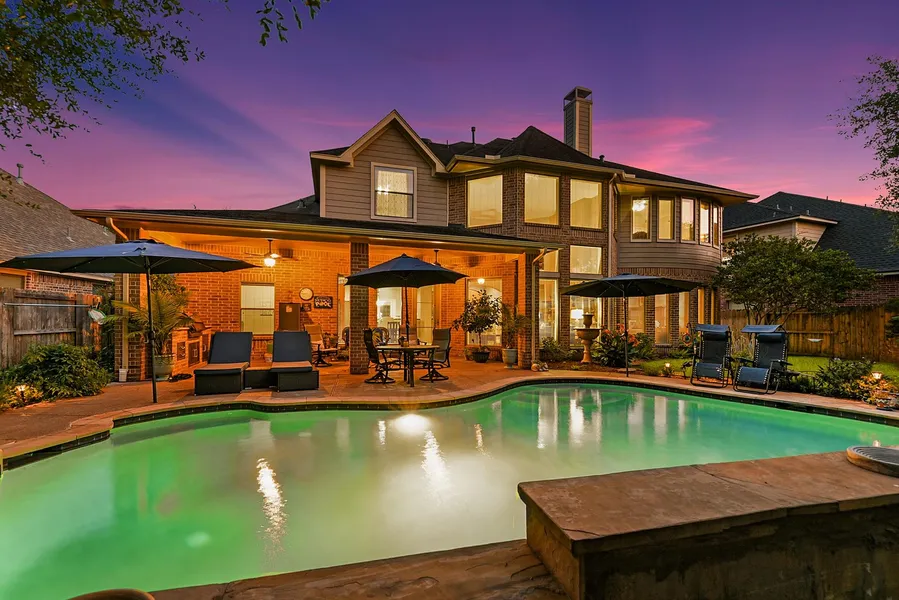 Stunning 2-story home featuring 4 bedrooms, 3.5 bathrooms and an Outdoor Oasis! Located in the highly sought-after Master Planned Community of Firethorne, zoned to Award Winning Katy Schools! This home is sure to impress with its heated saltwater pool, study/den, both formal dining and breakfast rooms offering amazing views from floor-to-ceiling windows and a large 1st-floor primary bedroom. Upstairs offers a game room, media room, 3 spacious bedrooms, all with walk-in closets. Enjoy the extended covered back patio with an outdoor kitchen, lush landscaping, sprinkler system and greenspace. Additional features include fresh paint throughout (baseboards to ceiling), new water heaters in 2022, ACs replaced in 2018, updated saltwater system for the pool in 2023 and more. The island kitchen is a chef's dream with granite counters, stainless steel appliances, sleek cooktop, beautiful oak cabinets with molding and a breakfast bar. This home won't last long, so schedule your appointment TODAY!