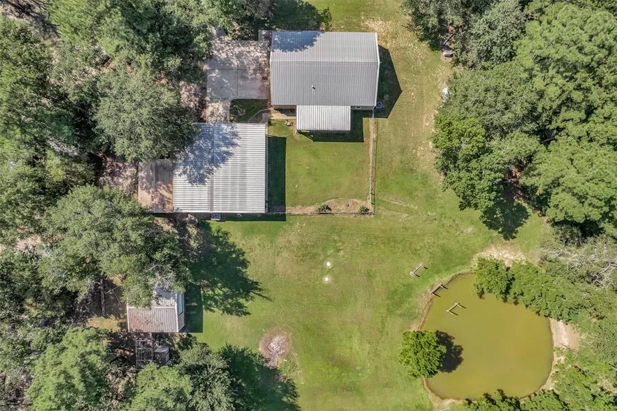 This expansive 2.06-acre property truly has something for everyone with endless features for you to discover! The main house features open-concept design with 2 full bedrooms downstairs, 2 loft bedrooms, & 2.5 baths. Primary suite offers his & hers closet with luxurious spa like bathroom. The Texas-sized covered back porch offers a beautiful view of the property. The main shop is 42x35, with AC/heat, 1/2 bath, & a fun bar area that is perfect for entertaining or working on projects in comfort. The 2nd shop is 24x24, equipped with (2) 8x10 roll-up doors, offering extra storage or workspace & attached chicken run/coop. Carport offers additional enclosed storage with roller garage door.An additonal outbuilding offers privacy & convenience, complete with 1/2 bath this building can be used for an outdoor game room or a casita. Enjoy the fully stocked pond & have peace of mind with a Generac g...