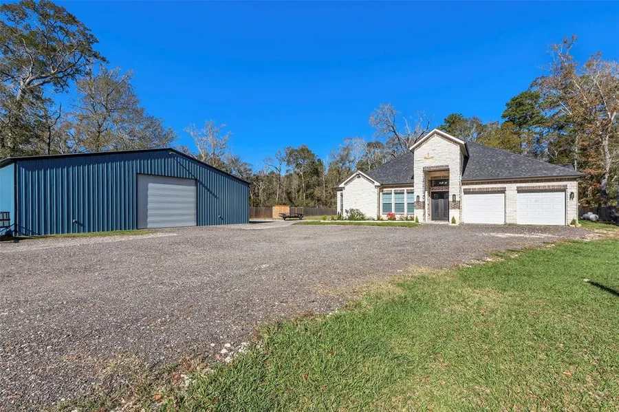 Nestled on a fully fenced, unrestricted one-acre lot, this stunning custom-built home is pure luxury. Greeted by a dramatic entryway with iron doors and soaring ceilings. Formal dining flows seamlessly into the spacious living room and gourmet kitchen. The kitchen is a chef's delight, boasting designer backsplash, quartz counters, custom cabinetry, and a large island. The primary suite is a tranquil retreat with a tray ceiling, spa-like en suite bathroom featuring a soaking tub, a dual-entry shower, dual vanities, and two expansive walk-in closets. Two additional bedrooms each with private en suite bathrooms A home office and a secluded gym offer dedicated spaces for productivity and wellness. Practical features abound, including a garage with a sink for added convenience and a massive 40x50 workshop, perfect for hobbies, storage, or a business venture.This property offers the freedom of no restrictions, ample outdoor space, and exceptional craftsmanship throughout.