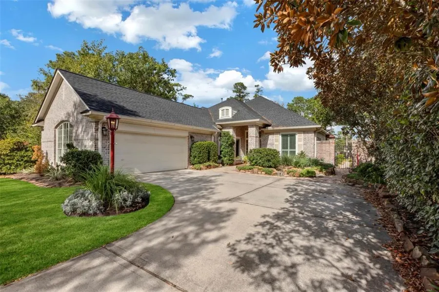 MULTIPLE OFFERS - DUE FRIDAY 1/3/25 BY NOON. This gorgeous one story home is located on the 5th hole of the Palmer Golf Course and has amazing views! Best LOCATION in the heart of The Woodlands! Real hard wood floors and soaring ceilings! The primary suite is HUGE & has beautiful views of the back yard. The en-suite bath has his & her sinks, whirlpool tub & separate shower. Large walk in closet. There are two other bedrooms that share a bath plus another half bath & study with french doors. Large formal dining room. The cook in your home will love this spacious kitchen which overlooks the living area. Tons of natural lighting with floor to ceiling windows throughout. This oversized cul-de-sac lot is arguably the best in the neighborhood with views of the golf course and large pond. Zoned to amazing Woodlands schools and close to tons of good restaurants, shopping & the mall! Easy commute to ExxonMobil. Don't miss the HUGE DECKED STORAGE area in garage with stairs! NEVER FLOODED.