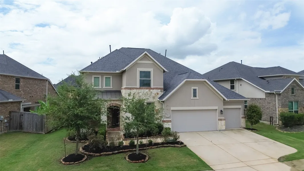 Discover luxury living in The Reserve of Clear Lake with this stunning 5-bedroom, 4-bathroom home. The open floor plan boasts soaring ceilings in the living room and warm wood floors. A grand 2-story foyer welcomes you, leading to a private study and a guest bedroom with a full bath on the main floor. The enormous kitchen with a large island seamlessly flows into the breakfast and living areas, perfect for entertaining, with expansive windows offering beautiful views of the backyard. Upstairs, a winding staircase leads to a media room, game room, and 3 additional bedrooms. The spacious primary suite on the first floor features a luxurious bath with a large tub, walk-in shower, and ample closet space. A 3-car garage and formal dining room complete this exceptional home. Sellers are motivated to sell now—don’t miss out on this opportunity!