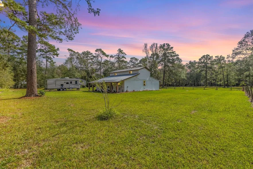 Come enjoy the serene life of 95 Hickory Ridge. Five beautiful fenced in acres surrounded by the privacy of mature trees and cross-fenced for animals in the back. Home does need a full remodel, but this is the perfect perfect opportunity to make this your dream home! RV hook-ups to the left of the property to live on the land while you do the remodel. Pond was started in the back right corner of the property. Endless possibilities here, bring your imagination. Sought after Huffman ISD!