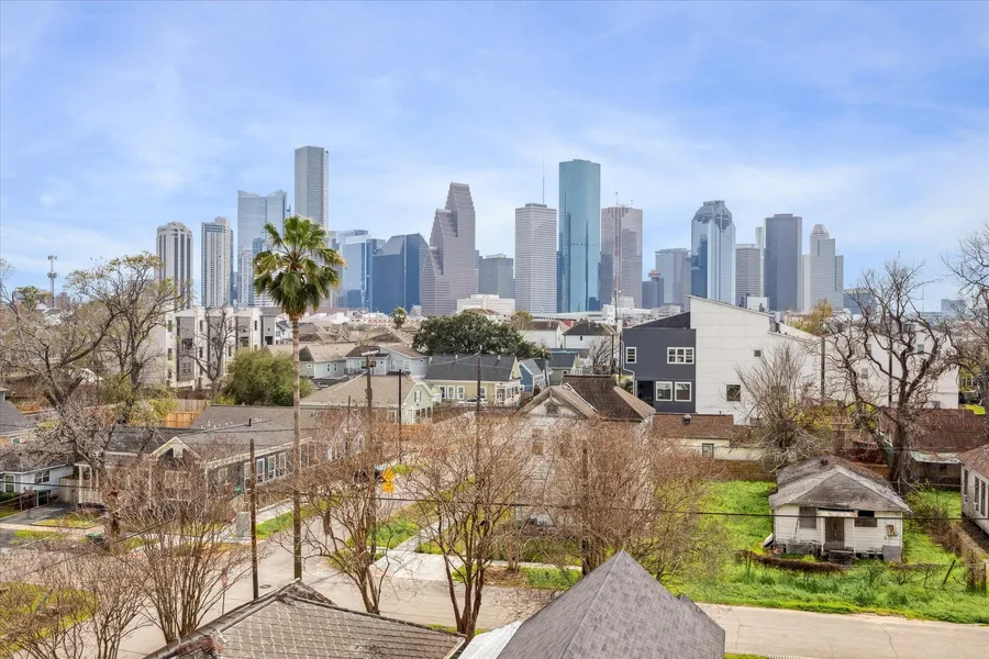Beautiful, modern home with incredible views of the Houston Skyline from the rooftop deck. Minutes from Downtown Houston, Medical Center, Museum District, Galleria, and Memorial Park. This spacious floor plan features large windows, double sided fireplace, bamboo floors, floating staircase, and high-end finishes throughout! Entertain effortlessly in the open concept living area and gourmet kitchen which boast Bosch appliances, Samsung Smart refrigerator, wine refrigerator, modern cabinetry, glass front cabinets, and large island with cooktop. Enjoy Houston's impressive skyline from your primary bedroom and bathroom which also features high ceilings, custom mosaic tile work, and tons of natural light. On the 4th floor you will find the media room with surround sound, wet bar, beverage refrigerator, and flex space. In addition to the rooftop deck this home has two glass front balconies for you to enjoy. NEW ROOF 2024. Don't let this one pass you by!! Schedule a showing today!