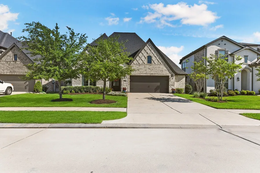 This single-story Perry Home, built in 2020, is located in the highly desirable Master Planned Community of Firethorne and zoned to award-winning schools. Meticulously maintained by the original owners, this open-concept home features 4 bedrooms, 3 bathrooms, a home office, and a flex room. The oversized island kitchen is a dream, with white cabinetry, sleek pulls, quartz countertops, and a stylish tiled backsplash. The kitchen seamlessly flows into the breakfast bar, dining room, and living room, where a wall of windows and a cozy gas fireplace create a bright and inviting atmosphere. Inside, you'll enjoy high ceilings, wood-like tile flooring throughout, and a modern white color palette. The spacious primary ensuite offers a spa-like retreat. Additional one bedroom features an attached bathroom, perfect for guests. The private backyard, with no back neighbors, includes a covered patio—...
