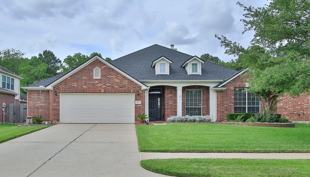 Enjoy easy living in this meticulously maintained 1-story home situated on a substantial lot with NO BACK NEIGHBORS! Amazing open floorplan with designer paint, stunning archways, crown molding, high ceilings, plantation shutters in kitchen/family RM and tile flowing through all main areas; spacious family RM with gas log fireplace and peaceful views overlooking the backyard; formal dining RM; game room or flex RM; home office; dreamy kitchen with breakfast bar, quartz counters and an abundance of cabinet space. Generous primary suite with spa bath offering dual sinks, garden tub, separate shower and huge walk-in closet! Enjoy outdoor entertaining on your back patio or take a stroll around the community lake. Roof 2022, Water Heater 2024, security system, sprinkler system and more! Zoned to highly acclaimed Klein ISD!