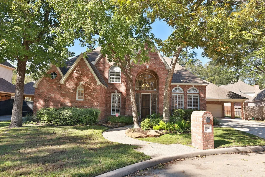 Come see this gorgeous 4-bedroom, 3/2 bath home on a quiet cul-de-sac on a wooded lot in Champions Park North. You will love the grand staircase as you enter the front door. Beautifully engineered wood flooring in the entry, dining room, living room, study, den, breakfast room, and primary bedroom. Large kitchen with gorgeous granite countertops, stone backsplash and undercounter lighting. Tons of cabinet space and a double oven with one being a convection oven make this a chef's dream. Large primary with a beautifully updated bath including a large soaker tub and separate remodeled shower makes this a true retreat. 3 large bedrooms, 2 baths and a game room up. Large bonus 13X10 climate controlled storage closet up. A lovely backyard, double staircases, 2-car porte-cochere, and an outdoor half bath are just a few of the many features that make this home special. Make your appointment tod...