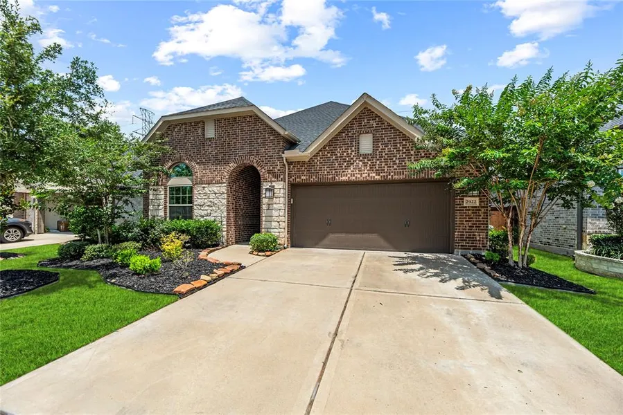 Discover the perfect blend of comfort and functionality in this stunning David Weekley Kale Floor Plan home. Boasting 3 bedrooms and 3 full bathrooms, this thoughtfully designed space includes a Game Room/Flex Space that easily can be used as or converted to a fourth bedroom. The spacious kitchen, complete with a large island, flows seamlessly into the breakfast area and family room, creating an inviting atmosphere for gatherings. A formal dining room with a gorgeous tray ceiling offers versatility, doubling as a study if needed. A built-in desk area off the kitchen adds convenience. The primary bathroom features a luxurious super shower-no tub. Enjoy added comforts like ceiling fans, recent interior paint, and a no-carpet design. Step outside to a covered patio with gas stub out and patio TV hookup, overlooking lush green space with no back neighbors. A 3-car tandem garage, water softener, French drains, and whole-yard sprinkler system complete this exceptional home.