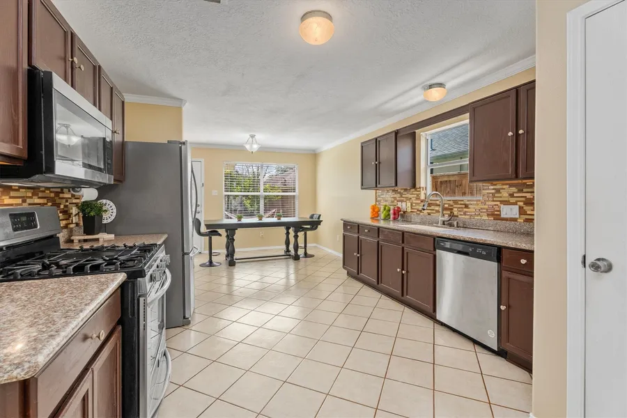 Welcome to 15026 Sunset Creek Drive in Humble! Come explore this beautiful, well-maintained home situated on a desirable corner lot in Sunset Ridge. Featuring 4 spacious bedrooms, 2.5 bathrooms, and an open-concept living and dining area perfect for entertaining. Oversized primary suite with two closets for extra storage. The secondary bedrooms are generously sized, offering plenty of space for family, guests, or a home office. Step outside to a large backyard complete with a huge extended patio, ideal for entertaining, grilling, or relaxing under the shade of mature trees. There’s also an extended concrete path along the side of the home, offering added flexibility for storage or access. Conveniently located near shopping, dining, schools, and major highways, this home combines comfort, space, and accessibility.