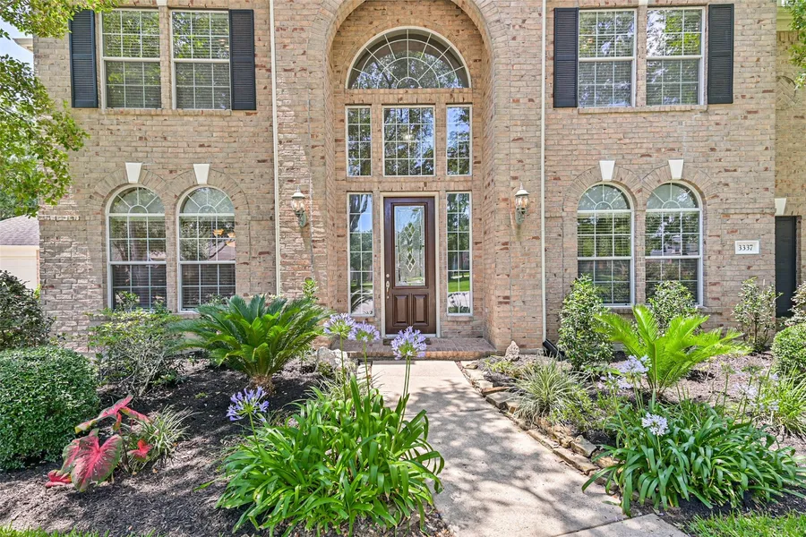 Welcome to this meticulously maintained, lakefront traditional home offering timeless charm, modern comfort, and no history of flooding. Nestled on a quiet, tree-lined street in highly sought-after Friendswood Oaks, this two-story beauty features stunning curb appeal, no backyard neighbors, and direct access to scenic walking trails. Inside, enjoy light-filled living spaces, hardwood floors, and an open-concept layout ideal for entertaining and everyday living. The kitchen boasts custom maple cabinetry with detailed corners and ample storage, flowing seamlessly into the cozy living and dining areas. Upstairs, a spacious game room offers flexibility for work or play. Relax outdoors on the covered porch and take in tranquil lake views. Don’t miss your chance to own this rare gem—schedule your private tour and submit your offer today!