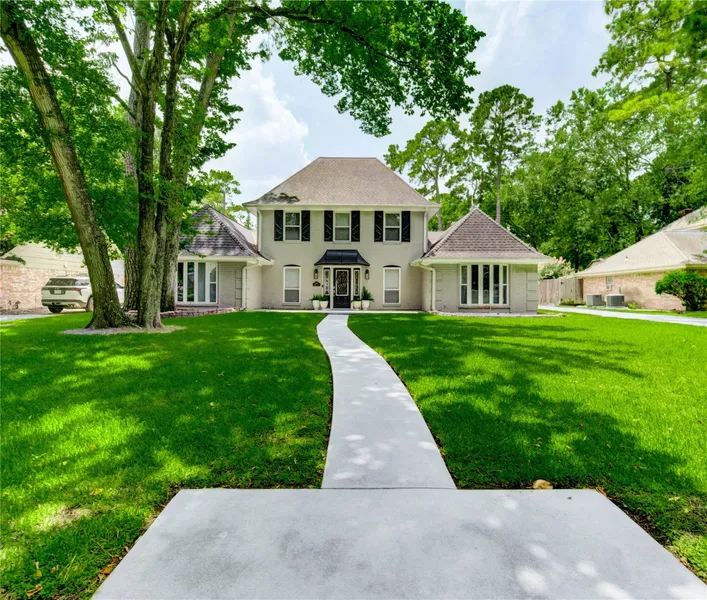 Elegant Estate Living on a Tree-Lined Street with Dual Primary Suites & Sparkling Pool. Move in ready home with classic curb appeal and elegant glass-door entry. TWO Primary bdrms–Ideal for Multi-Generational Living. The 1st-floor primary bedrm offers true retreat-style living with 3 closets, an ensuite with a walk-in shower and built-in bench. Upstairs features a primary bedrm with its own ensuite, 2 spacious bedrms and a third full bath with dual sinks. The heart of the home—a beautifully updated kitchen—boasts quartz countertops, updated cabinetry, double ovens, and modern appliances (washer, dryer, and fridge included), making both everyday living and entertaining a breeze. Versatile Office Spaces– two dedicated office nooks at either end of the expansive entryway gives you the flexibility. Detailed with crown molding, mood lighting, and an oversized utility room. Enjoy a private fenced pool, expansive patio, and lush yard with low taxes. This move-in-ready gem is perfect.