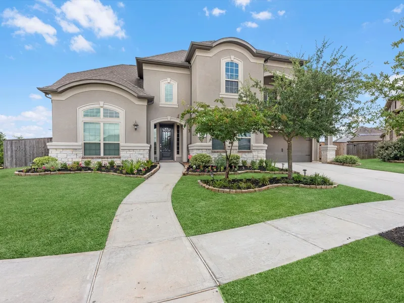 Gorgeous, Chopin floorplan home, in gated Oakcrest! Primary plus another secondary bed & full bath down in this floorplan. Wood look tile flooring down & beautiful wood in study! And beamed ceilings & double French doors in elegant home office. Dining room has space for large furniture & all your guests for easy entertaining. Beautiful family room has 2 story ceilings, fireplace w/ cast stone mantle & wall of windows overlooking huge yard & pool. All open to a chefs dream kitchen! Plenty of storage, quartz counter tops & gas cooking. Pull up bar has room for 6, plus a breakfast area w/ built ins. Primary is at the back of the home w/ sitting area, all awash in natural light. Ensuite bath attaches to laundry for convenience. Upstairs are 3 more secondary beds & 2 more full baths. Gameroom up is great for play time for all ages & media room makes movie night memorable! Everyone will love t...