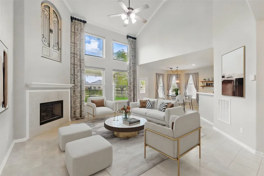 ABSOLUTELY FABULOUS!! This beautiful home located ON THE LAKE in the Highly Desired community of Wimbledon Falls is the one you've been waiting for! Newer WHOLE-HOME GENERATOR, New Windows, Fresh Paint, New Carpet & Tile Flooring are just a few of the updates in this Taylor Morrison home. 2 Story Den w/Soaring Ceiling & Windows, Island Kitchen with 42'' white cabinets, white countertops and gas cooking! Spacious Primary Bedroom with Huge Closet, Elegant Dining Room with Updated Lighting & Custom Paint, Breakfast Bar & sunny breakfast room! Water Heater installed in 2024! Newer Fence and Storage Shed! Lovely Extended Covered Patio with WATERVIEWS! Walking Trails w/Gate Access. New Sod & Updated Landscaping! This Home Comes with a 3-YEAR HOME WARRANTY! Seller has just replaced the carpet upstairs and installed a brand new microwave!