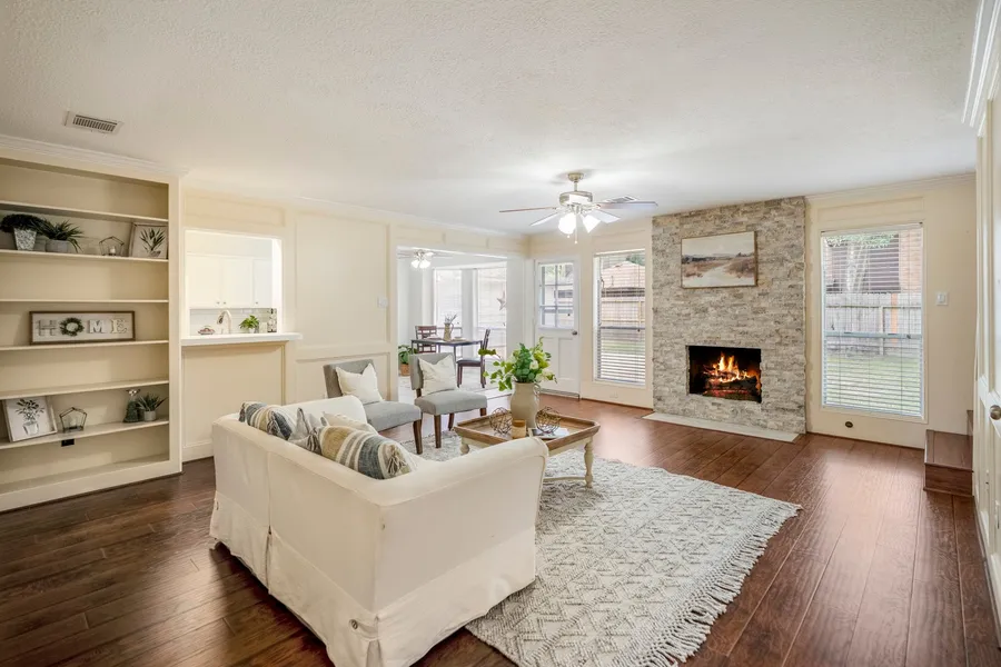 Life feels a little easier on Flaming Candle Drive. With its quiet cul-de-sac setting, flexible layout, & thoughtful updates, this home is built for everyday comfort. The remodeled kitchen features quartz counters, a glass cooktop with a statement vent hood, updated cabinetry, & dual ovens—opening to a bright breakfast area that connects easily to the main living space. Formal living & dining rooms add versatility for entertaining, working from home, or simply spreading out. The primary suite is tucked downstairs, while all secondary bedrooms & a generous game room are upstairs, offering space to relax or reconnect. Out back, a detached two-car garage & open patio sit on a wide lot with room to make it your own. Located in Candlelight Hills with quick access to I-45, you're minutes from shopping, dining, & recreation—with Downtown & The Woodlands within easy reach. Amenities include a cl...