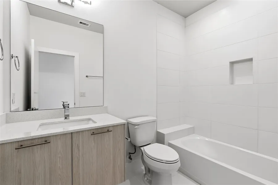 This new 3-bedroom, 2.5-bath home sits on a 3,000 SF lot & offers a highly sought-after first-floor living layout just minutes from Downtown Houston. Spanning 1,860 SF, the home features 10-foot ceilings on the main level, zero carpet throughout & durable LVP flooring designed for city living. The open-concept first floor connects the living, dining & kitchen spaces seamlessly, with a gas range & thoughtful flow ideal for everyday living & entertaining. Upstairs, the primary suite is set apart & opens to its own covered balcony, creating an extension of the living space outdoors. Secondary bedrooms are well-sized & flexible for guests. Additional highlights include a private driveway, covered patio & a large backyard, rare for new construction this close to the city. Located near East River, local restaurants and downtown, this home offers convenience, momentum & lifestyle in one package. An excellent option for first-time buyers seeking space, layout & location without compromise.