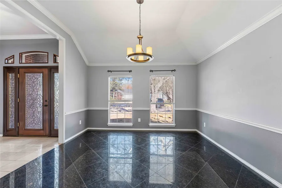 Welcome to this fabulous one-story home located on a quiet cul-de-sac in the sought-after community of Walden on Lake Houston. This impeccably maintained residence offers 4 bedrooms, 2.5 baths, a private study, formal dining, and an oversized detached 3-car garage. From the moment you enter, you’ll notice soaring ceilings, crown molding, designer finishes, recessed lighting, and extensive stone flooring throughout. Granite floors highlight the study, primary suite, formal living, and dining areas, while marble flooring enhances the entry, all bathrooms, the primary bath, and the fireplace surround. The gourmet kitchen features granite countertops, a travertine backsplash, abundant cabinetry, breakfast bar, and breakfast nook. Unwind in the inviting living area with a custom shiplap fireplace.
