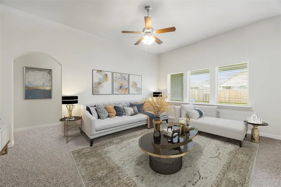 Welcome to 411 Asiatic Black Bear Way, located on a quiet street in the Kodiak Crossing community. This well-maintained one-story, 3-bedroom, 2-bath home features an open-concept layout with high ceilings and abundant natural light throughout the living, kitchen, and dining areas—ideal for everyday living and entertaining. The kitchen offers granite countertops, a large island with breakfast bar seating, gas range, ample cabinetry, and pantry space. The private primary suite includes a soaking tub, separate walk-in shower, dual sinks, and a spacious walk-in closet. Enjoy a fully fenced backyard with room to relax or personalize. Fully owned solar panels add excellent energy efficiency. Conveniently located near FM 2100 and Highway 90 with easy access to Crosby Park, Newport Golf Club, and outdoor recreation near Lake Houston, plus a smooth commute toward Beltway 8 and Houston.