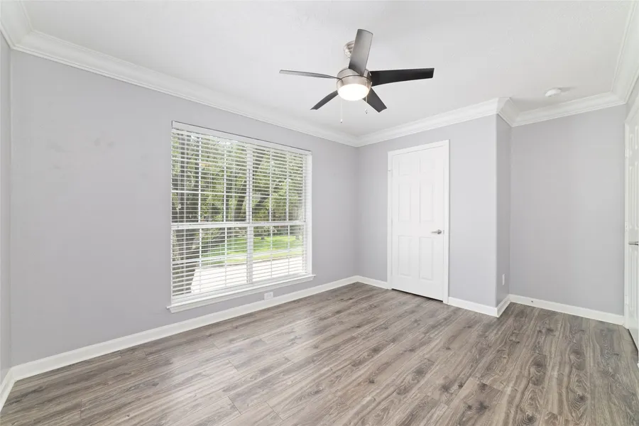Beautiful 4 bed 2.5 bath brick home situated on a desirable corner lot. Entering you are greeted with wood look tile flooring and elegant crown molding that flows throughout the home. To the left is a formal dining room, and to the right a formal living room, perfect for entertaining. Kitchen features granite counters, stainless steel appliances, and a bright breakfast area. Living room offers a cozy gas log fireplace and plenty of natural light. Upstairs you will find all 4 beds, each with walk in closets, along with an additional flex room. Large primary suite boasts an ensuite bath with dual sinks, a Whirlpool jetted tub, separate glass shower, and two closets. Secondary bath includes double sinks and a tub shower combination. Outside to enjoy a stone patio and an oversized fully fenced backyard. 3 car garage offers versatile options, with one side ideal for an office, workshop, or go...