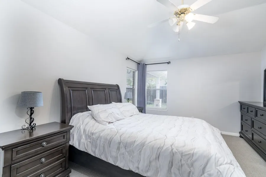 INVESTORS ONLY!Long-term tenant in place. Currently leased for $2,575.00 per month. UPGRADES throughout. Well-maintained home with open layout has vaulted ceilings,laminate floors in living area, upgraded lighting, and lots of natural light from double paned windows. Spacious living and dining areas center around a cozy fireplace with excellent flow for everyday living. The kitchen has richly stained cabinetry, ample counter space, stainless steel appliances, drinking water filtration system & a breakfast nook with arched window. The primary bedroom has high ceilings,upgraded carpet,views of the private backyard & en-suite bath with dual-sink vanity & tub/shower combo. Secondary bedrooms are well-sized with neutral finishes. Enjoy exceptional outdoor living on the spacious covered backyard patio featuring high ceilings,ceiling fan,mounted TV,& ample room for seating & entertaining. The fully fenced backyard offers privacy & flexibility. Conveniently located near shopping,dining,& major roads.