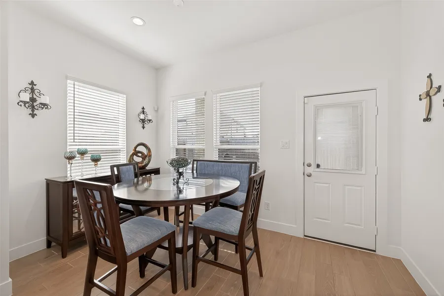This well-maintained home features no carpet, wood-look tile flooring (not LVP), and ceiling fans in every room. The open layout offers a bright living area and a modern kitchen with stainless steel appliances, ample cabinetry, and an island ideal for daily living and entertaining. The primary suite features a sleek bath with dual vanities and a glass-enclosed walk-in shower. Secondary bedrooms are well-sized with easy access to a full bath. Additional highlights include an extended garage, a water softener, and a covered patio overlooking a fully fenced, low-maintenance backyard. Conveniently located near shopping, dining, major highways, and Cy-Fair ISD, with access to resort-style community amenities including pool, lazy river, clubhouse, and more.