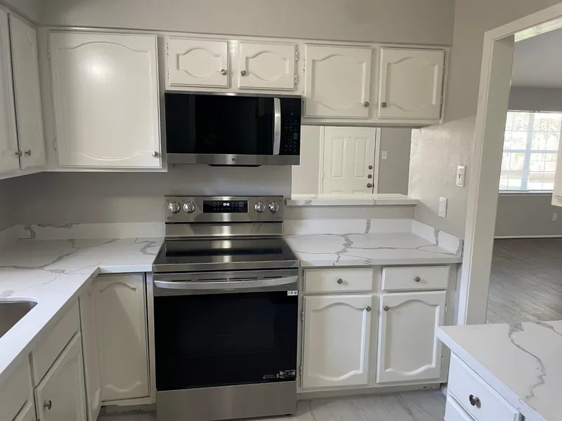 Freshly remodeled 4 bedroom two bath home located on a quiet cul-de-sac. New roof and HVAC with replacement air ducting equipment! New electric service panel, updated kitchen and baths. New stainless kitchen appliances including a refrigerator. New sleek Calcutta quartz counter tops in the kitchen and baths. New tiled tubs and shower surrounds in the baths. Freshly painted interior. New premium laminate flooring in common areas, new over size tile in wet areas, and new carpet in bedrooms. Minor levelling of foundation complete. Some new back yard fencing. Double pane, more efficient than original windows. Fairly priced given the upgrades! Low HOA dues and property taxes. Community pool, tennis and pickleball courts as well as kids' play area. Enjoy an easy commute with quick access to HWY 59 and 1960, and discover a variety of retail stores and restaurants right at your doorstep.