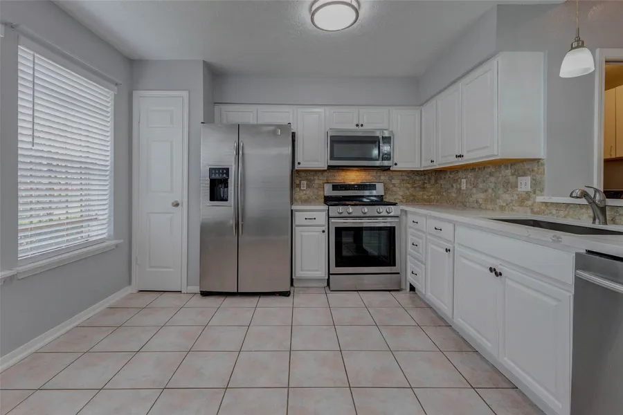 Stylish finishes highlight this three-bedroom, two-bath home, featuring quartz countertops, a barn-style kitchen sink, stainless steel appliances, and tile/vinyl flooring throughout. Freshly painted interiors create a clean, modern feel. Centrally located with convenient access to major highways, shopping, dining, and everyday amenities. The roof is approximately three years old, and a backyard shed provides additional storage.