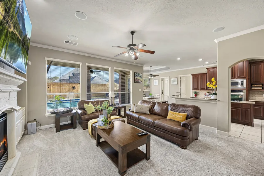 Stunning home located in the highly coveted Champion Woods Estates, offering elegant design and exceptional living spaces throughout. This residence features 4–5 bedrooms and 3.5 baths, including a spacious owner’s retreat with French doors that open to a private backyard oasis with a sparkling pool. The home boasts an elegant curved staircase, real hardwood floors, high ceilings, and detailed crown molding. Additional highlights include a formal dining room, private office, game room, and a balcony overlooking the pool—ideal for both everyday living and entertaining. A rare opportunity to own a beautifully appointed home in one of the area’s most desirable communities.