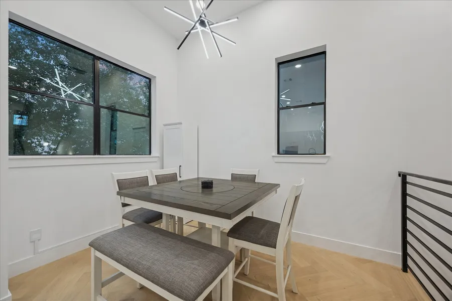 Unforgettable rooftop terrace with stunning, unobstructed views of the Houston skyline—perfect for entertaining and sunset nights. This brand new, never lived in, free-standing modern luxury home offers a private driveway, no shared walls, no HOA, and low taxes, just steps from Buffalo Bayou Park. Inside, enjoy soaring ceilings, abundant natural light, designer lighting, and rich white oak herringbone floors on the 2nd–4th levels. Chef-inspired kitchen features European style cabinets, waterfall granite island, and premium finishes. The 3rd-floor primary suite includes skyline views, a spa-style bath with sauna, and spacious walk-in closets. Prime location near dining, shopping, and major freeways.