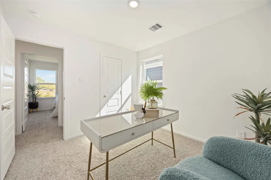 The Daisy floor plan by D. R. Horton is a smartly designed two-story new construction home that offers comfort, efficiency, and modern living all in one affordable package. With 3 bedrooms, 2.5 bathrooms, and a 2-car garage, the Daisy is perfect for gatherings, first-time buyers, or anyone looking for a low-maintenance, energy-efficient home in a vibrant community. The first floor showcases a bright and open room that flows seamlessly into the dining area and gourmet kitchen, complete with stainless steel appliances, quartz countertops, a spacious pantry, and ample cabinetry. A powder bath, coat closet, and convenient utility closet with washer/dryer connections enhance daily functionality, while the attached garage provides secure storage and easy access.