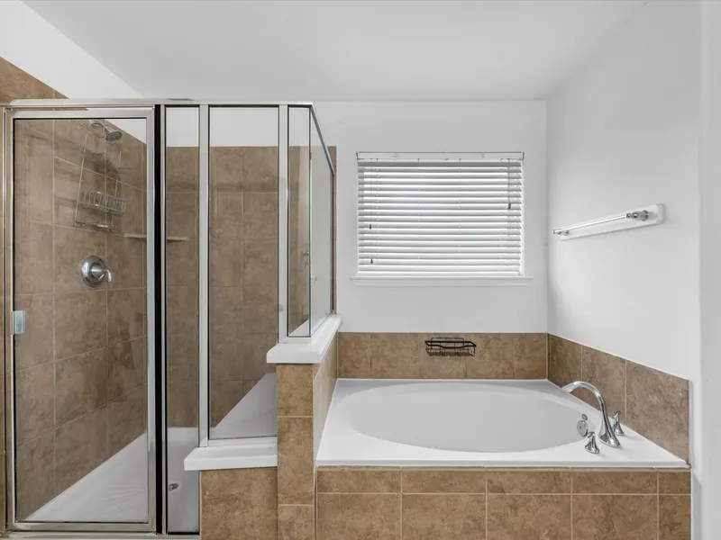 Great 3 Bedroom, 3 bath home in Stonehedge just minutes from Hardy Toll Rd. This home is located on a greenbelt with no back neighbors. Arched doorways and neutral tones. Kitchen with stainless appliances, tile back splash, granite counter tops, breakfast bar and large pantry. Nice eating area with direct access to back yard and deck. Front room could be used for Living, Formal Dining, or office. Finished under-stair storage area. A downstairs utility room sits off the garage entry, and also includes a full bath. An Expansive, Upstairs Master bedroom has additional sitting area which could also be used as an office or exercise room. En-suite Master bath has dual sinks, large shower with seat, separate tub, & a Huge 11x10' walk-in closet w/ built-in shelving. 2 additional bedrooms share large bath with shower/tub. Large Game room with built-in shelving. Fenced back yard has nice deck and...