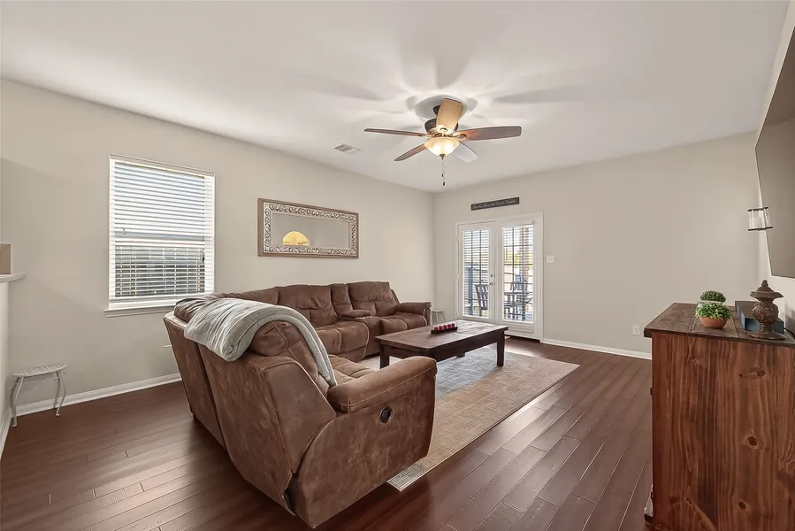 Welcome to this charming one-story brick home with lush landscaping and fantastic curb appeal. This 3-bedroom, 2-bathroom home features an open-concept layout with the kitchen flowing seamlessly into the spacious living room, complete with French doors that open to the backyard and flood the space with natural light. The kitchen is equipped with granite countertops, stainless steel appliances and 36-inch cabinets. The primary suite offers a peaceful retreat with large windows and an ensuite with a soaking tub, glass-enclosed shower, and a walk-in closet. Step outside to a private, fenced backyard with a covered patio and no back neighbors—perfect for relaxing or entertaining. The 2-car garage completes this move-in-ready home. Don't miss out on this exceptional opportunity!