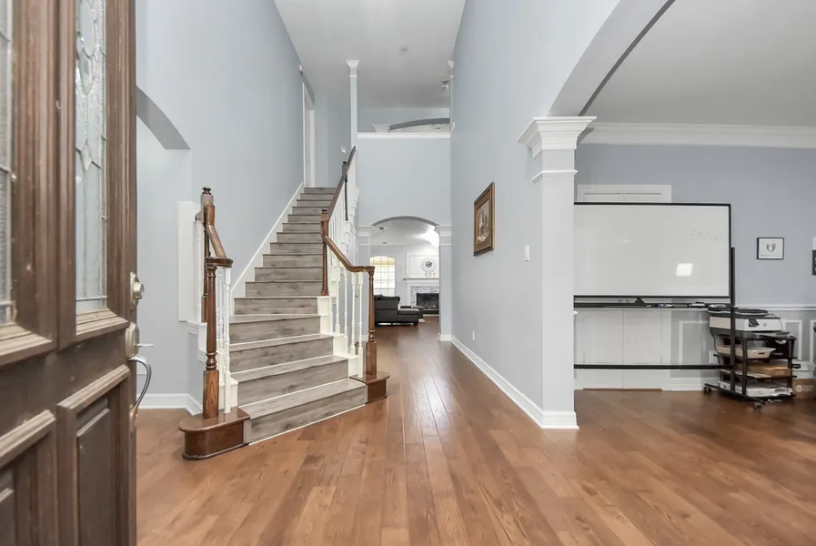 Step into your dream home with this impressive 5-bedroom, 4-bathroom residence featuring soaring ceilings, a striking chandelier, engineered wood floors, and tile in the kitchen. The renovated kitchen showcases white cabinetry, granite countertops, and an island with a gas cooktop, plus a breakfast nook and formal dining room. The main level includes a private primary suite and a flexible bedroom ideal for guests or a home office. Upstairs offers a spacious game room and three additional bedrooms. Enjoy relaxing in the backyard oasis with a covered patio, perfect for sunny summer days. Don’t miss this opportunity!