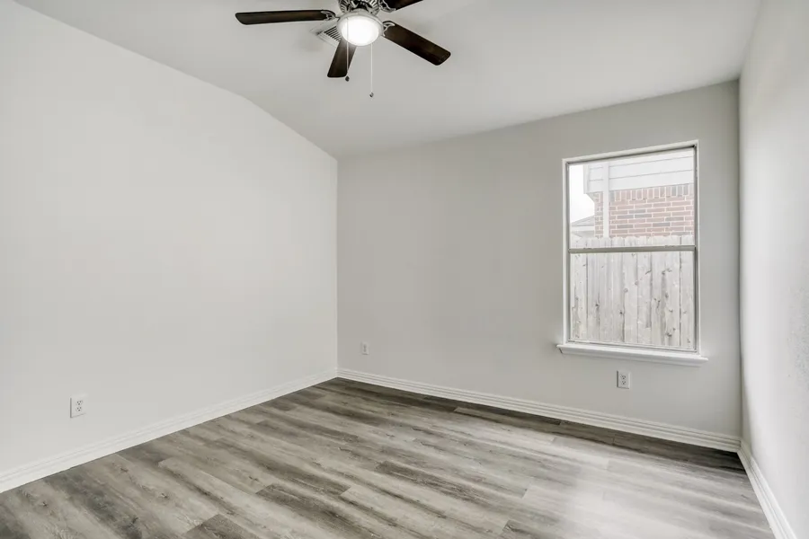 This impressive single-story home is located in a desirable subdivision near highly-rated schools. The property features an open floor plan with high ceilings throughout, fresh paint, and new flooring. Key highlights include a large kitchen and a private backyard with no rear neighbors, featuring a private pool. The primary bathroom is equipped with double vanities, a separate shower, and an oversized garden tub. The community offers excellent amenities, including walking trails, a playground, and a neighborhood swimming pool.