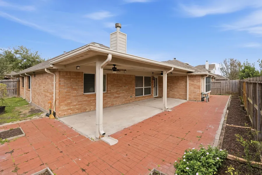 Beautifully maintained 1-story all-brick home built in 2005, offering durable construction and excellent curb appeal. Interior features tile and wood flooring throughout with no carpet. Open-concept living and dining areas provide great natural light and functionality. The kitchen is equipped with granite countertops, ample cabinetry, and generous counter space, ideal for everyday living and entertaining. Spacious primary suite includes double vanities, a separate soaking tub and stand-alone shower, and a large walk-in closet. Secondary bedrooms are well sized, and every room is equipped with ceiling fans. Roof replaced approximately 5–6 years ago. Enjoy outdoor living on the oversized covered patio with cement flooring and two ceiling fans, fully fenced for privacy. Garage features epoxy-coated flooring. Conveniently located with easy access to major highways, shopping centers, restaura...