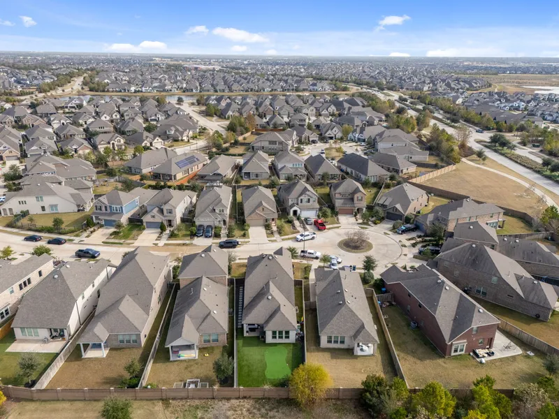 Welcome to this stunning two-story home that blends modern design with timeless charm and exceptional curb appeal. From the elegant brick-and-wood exterior to the inviting covered porch, every detail reflects pride of ownership. Inside, a bright foyer opens to a spacious, light-filled living area with a striking stone fireplace and seamless open-concept flow into the breakfast area and gourmet kitchen. The kitchen has large island, quartz countertops, white cabinetry, and premium stainless steel appliances. A stylish glass-door office adds flexibility for work or creative space. The primary room offers spa-like bath and oversized walk-in shower. Upstairs, enjoy a generous game room, 2 additional bedrooms, full bath. The backyard features a covered patio, low-maintenance turf, and a private putting green, all set against open space for added privacy. Quiet cul-de-sac with easy access to m...