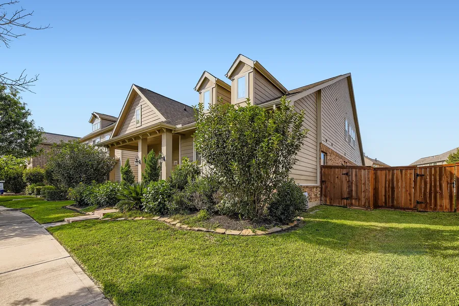 This spacious Cypress home offers a warm and welcoming layout with thoughtful design throughout. The living room features a stunning brick fireplace and opens seamlessly to the kitchen, which boasts a large island with bar seating, a walk-in pantry, and plenty of space for entertaining. The primary bedroom provides a peaceful retreat with an ensuite bath that includes dual sinks, a soaking tub, a separate shower, and a walk-in closet.