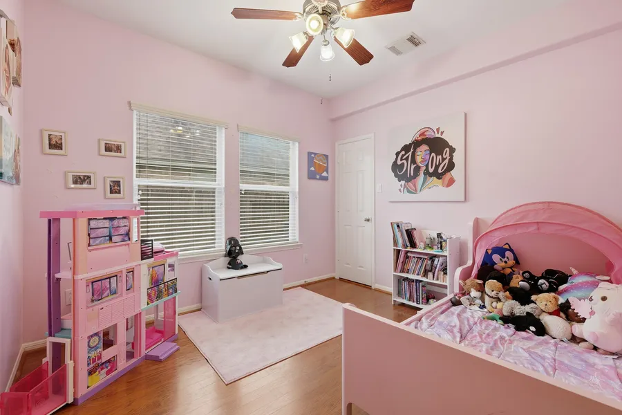 This traditional-style home offers timeless curb appeal and a functional layout featuring five bedrooms, a game room upstairs, two full baths, and one-half bath. Located in a master-planned community, residents enjoy access to a sports complex and a resort-style pool with slides. Situated in an established neighborhood, this home combines classic design, space, and exceptional community amenities.