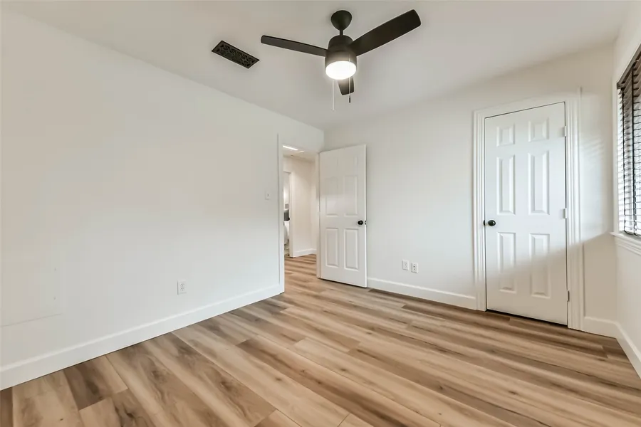 Mid-century, transitional touches on an oversized corner lot in Forest Bend. This zen-like showpiece features unbelievable landscaping, outdoor lighting, newer roof & 2025 AC, driveway & front walkway, updated windows, flooring, paint, cabinetry & hardware. With a sought after open concept, great flow is provided for entertaining between the living room, kitchen and dining area. Large wood burning fireplace, vaulted ceilings with wood beams, LVT flooring, and dreamy white paint make the living room a great space to gather. In the kitchen, huge breakfast bar, under-mount farmhouse sink and under cabinet light are finished off with granite countertops. The primary suite boasts a large walk-in shower, vanity area, wall sconces and access to the back patio. The secondary bedrooms are good in size and one could easily serve as an office with its french door entry. The backyard is remarkable with multiple patio areas, fire pit, storage shed and a majestic oak tree. Truly a rare find!!
