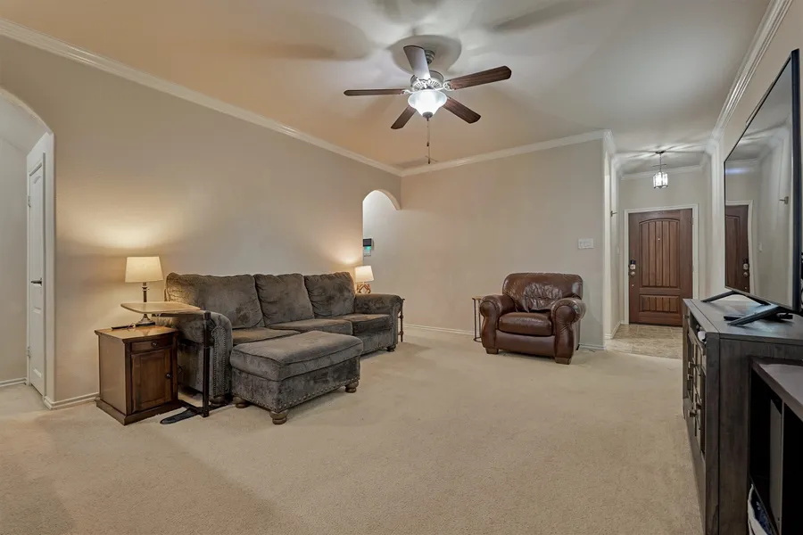Welcome home to this beautifully maintained residence, situated on a spacious lot with NO BACK NEIGHBORS for added privacy! Step inside to find a warm, neutral paint palette, crown molding & abundant natural light that enhance the inviting atmosphere throughout. The open-concept kitchen boasts elegant granite countertops, rich cabinetry & stainless-steel appliances making it ideal for everyday living & entertaining. Seamless movement into the eat-in breakfast nook & large living room. Primary bedroom down, features a serene ensuite bath with a soaking tub, separate shower & dual sinks. Upstairs, a spacious game room offers flexibility for family fun or relaxation along with 3 sizable bedrooms & a full bathroom. Enjoy outdoor living at its finest in the backyard, complete with an oversized custom covered patio & ample space for pets & children to roam & play. With a short commute to IAH &...