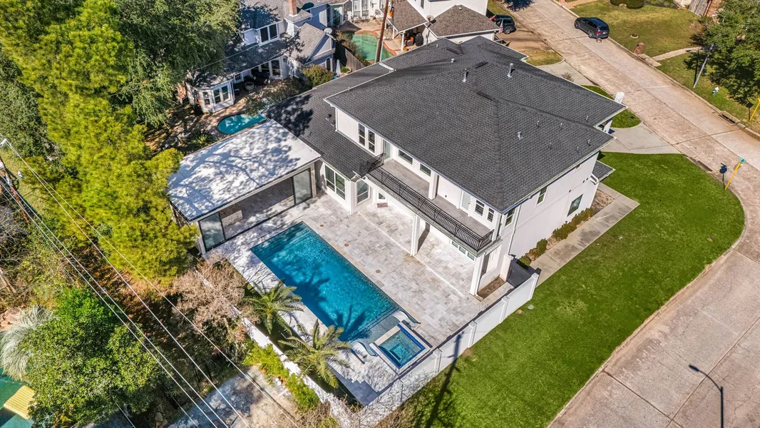Welcome to 16203 Heden Rd, a striking modern residence on a corner lot with high-end upgrades throughout. This custom home offers an open floor plan with porcelain flooring on the first floor, a sleek modern kitchen with cascading quartz countertops, oversized sink, premium appliances, refrigerator included, and a water filtration system at the kitchen sink. The main level features electric motorized window shades, custom lighting, and refined architectural details. Five spacious bedrooms include full bathrooms with rainfall/waterfall shower heads, LED-lit mirrors, and custom closets. The second floor features laminate flooring and balconies overlooking both the front and backyard. The highlight is the resort-style backyard with a private pool and a fully enclosed pool house featuring a built-in grill, TV, and finished flooring. Additional features include a sprinkler system, custom driveway, and exterior accent lighting.