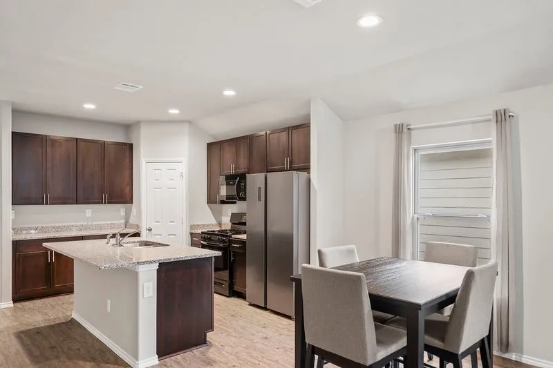 Beautifully maintained one-story home with an inviting brick elevation and a spacious two-car garage, located in a quiet, family-friendly neighborhood. The kitchen offers granite countertops, a large island , dark cabinetry, stainless steel appliances, and a gas range, plus a generous pantry for added storage. The home includes 3 bedrooms, a dedicated office space, and a versatile flex room. The primary suite features an ensuite bath with a relaxing soaking tub and a separate glass-enclosed walk-in shower. The second full bath offers a double-sink vanity and a tub/shower combo, conveniently serving the secondary bedrooms. Fully fenced backyard with plenty of green space.