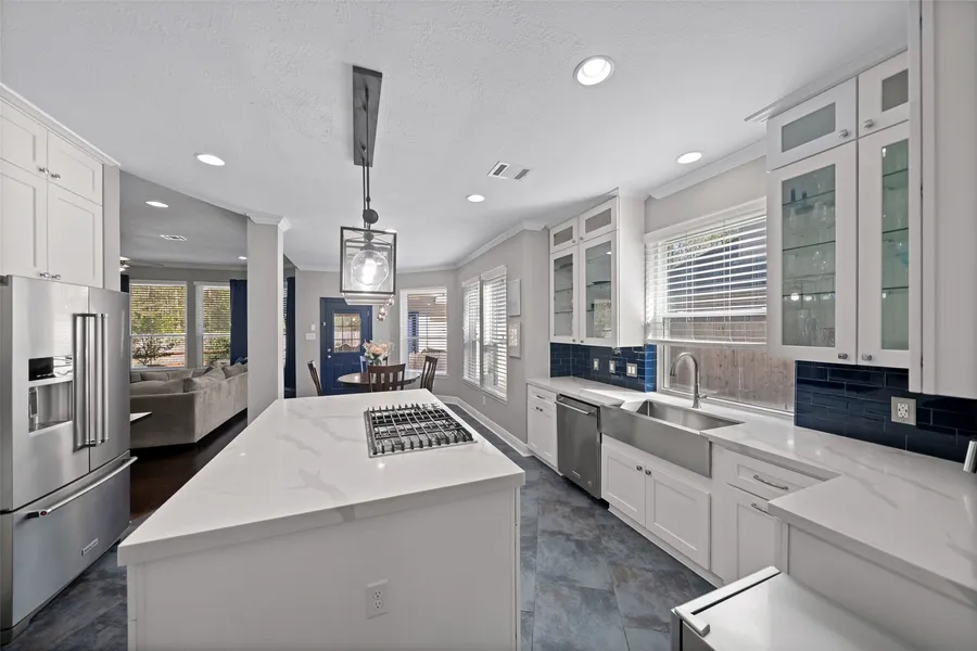This stunning 3,702/sf two-story home is a showcase of designer finishes and refined details throughout. The to-die-for kitchen commands attention with high-end finishes, custom touches, a large center island, quartz countertops, and high-end appliances. The spacious family room features custom built-ins and a dramatic stacked-stone fireplace that anchors the space beautifully. Engineered wood floors and tile elevate the main living areas, while a bold designer accent wall and curved staircase create an unforgettable first impression in the entry. The primary suite offers a generous bedroom and a beautifully updated, spa-inspired bath. Backing to a reserve with no rear neighbors, the large backyard provides privacy and serenity, complemented by the peace of mind of a whole-home automatic backup generator. With 5 bedrooms and 4.5 baths, an upstairs en-suite bedroom is currently styled as ...