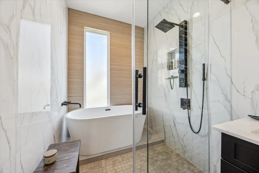 Modern living at its finest in this 3-bedroom, 3.5-bath home located in Shepherd Oaks. The first-floor bedroom features an en-suite bath with direct access to a low-maintenance backyard with turf, decking, and an aluminum pergola. The second floor offers an open-concept living, dining, and kitchen space with high ceilings, abundant natural light, and a private balcony. The kitchen is outfitted with stainless steel appliances, gas cooktop, farmhouse sink, quartz countertops, and pantry. The third floor includes the primary suite and an additional bedroom, both with en-suite baths. The primary suite features high ceilings, accent wall, walk-in closet, and a spa-inspired bath with double vanities and soaking tub within a walk-in shower. Additional highlights include NO CARPET, epoxy-coated garage floor, built-in entry storage, EV-ready wiring, outdoor kitchen rough-ins, and a PRIVATE DRIVEWAY. Convenient access to the Heights, Downtown, H-E-B, dining, parks and major freeways.