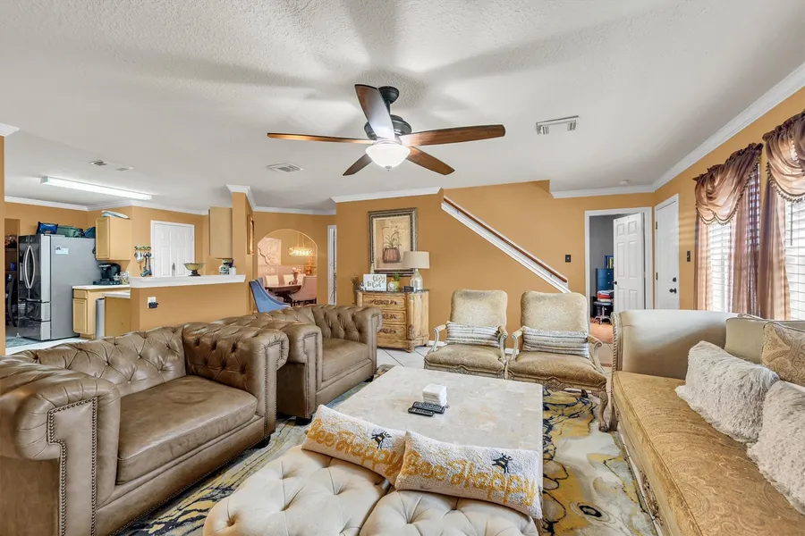 Well-maintained 4-bedroom, 2.5-bath home with key system upgrades and tasteful interior finishes. Recent improvements include a new roof (2022), updated primary bath and half bath (2022), A/C replacement (2024), and water heater replacement (September 2025). Flooring is tile throughout the main living areas and kitchen, with wood laminate in the bedrooms, dining area, and upstairs living room. A first-floor bedroom provides flexible use as a guest room or dedicated home office. Owners are related to the realtor