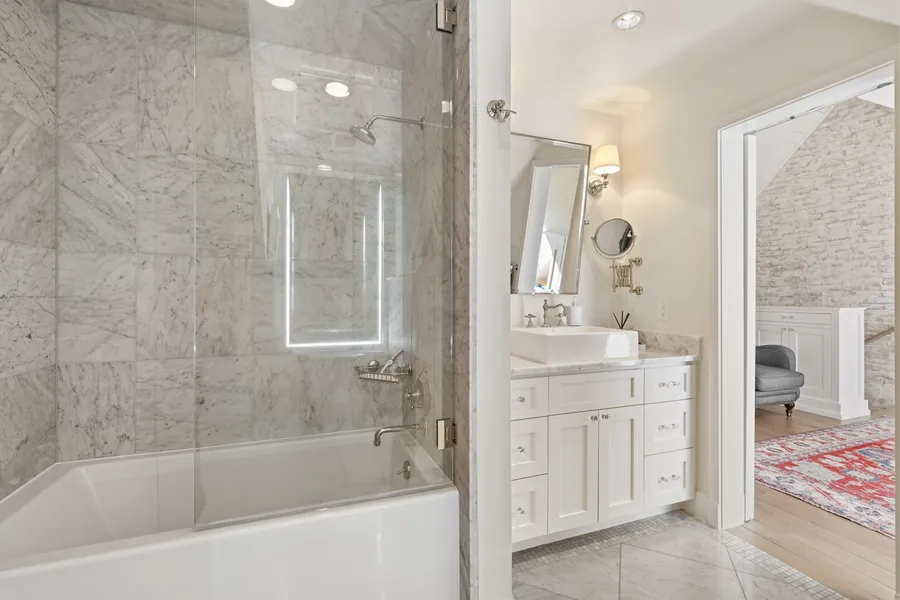 Architectural masterpiece in exclusive Hammersmith. Two Primary Suites, Originally designed by renowned architect Lucian Hood, extensively remodeled in 2012 by J Marshall Porterfield. This immaculate three-story luxury townhome evokes a classic London brownstone with soaring ceilings, and abundant natural light. Features include wood-burning/gas fireplaces in den and primary suite, wide oak and marble floors, custom glass staircase, three private terraces including one with forever views. Chef's kitchen with Sub-Zero, dual Wolf ovens, antique mirrored backsplash, Carrara countertops, wet bar, & built-in Miele espresso machine. Primary suite offers dressing room, custom closet, marble bathroom with soaking tub and walk-in shower. Hammersmith is a private oasis conveniently located prestigious neighborhoods—Piney Point, Hunters Creek, and Tanglewood—meet. With a private pool, and lush gree...
