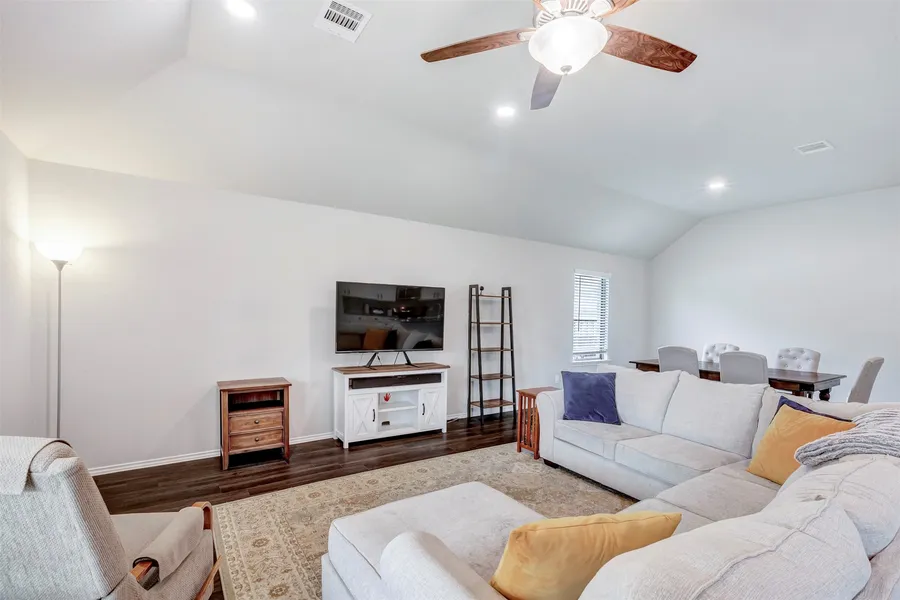 Beautiful, open-concept, single-story home with 4 bedrooms, 2 bathrooms, and a 2-car garage. This property features no carpet, with LVP flooring throughout the entire home. The spacious layout is perfect for entertaining, with an island kitchen that opens to the family room and dining area. The home includes a split floor plan for added privacy. The primary bedroom is generously sized and features an ensuite bathroom with a soaking tub, a separate shower, and a large walk-in closet. Situated on a corner lot, the backyard includes a large covered patio ideal for cookouts. Pride of ownership is reflected in this property. Schedule your private tour today!